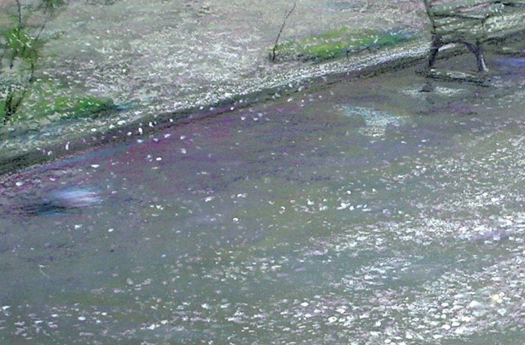Falling Flowers -- Oil Pastel---by Kwong Ko Wah