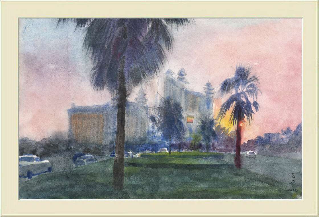 前面不是什麼名勝,這張畫只是從一賭場的車站望向另一賭場。